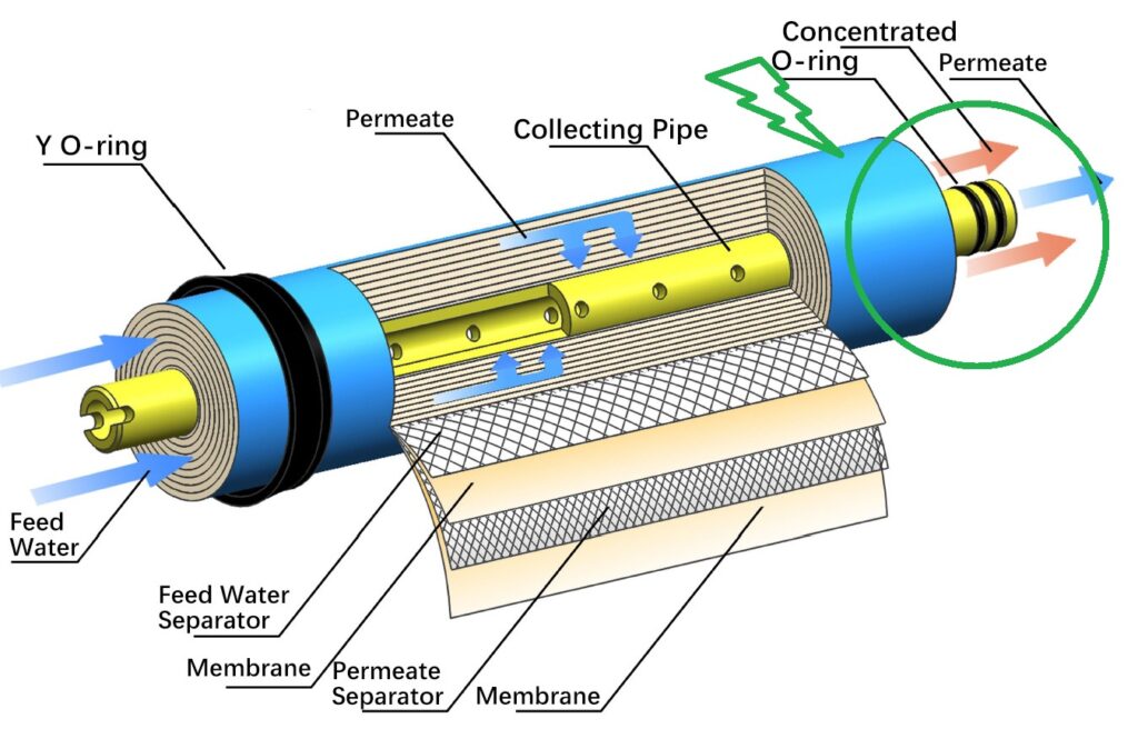 This diagram clearly shows how a reverse osmosis membrane for a domestic device is structured