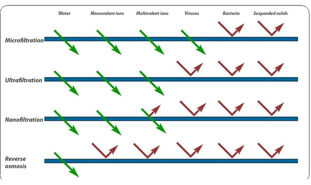 The membrane of the osmosis system actually has the ability to stop microorganisms, from micrometer-sized bacteria to nano-metric-sized viruses. The prefix micro indicates a reduction of a million times smaller than the meter, while the prefix nano indicates a reduction on the order of a billionth.